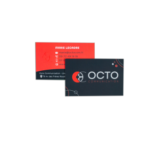 Carte de visite sur papier 350grs demi-mat. Impression couleur au recto et/ou au verso. Relief pour un rendu luxe. Le plus OCTO : frais de maquette offerts ! Délais : 7 jours ouvrés à validation...